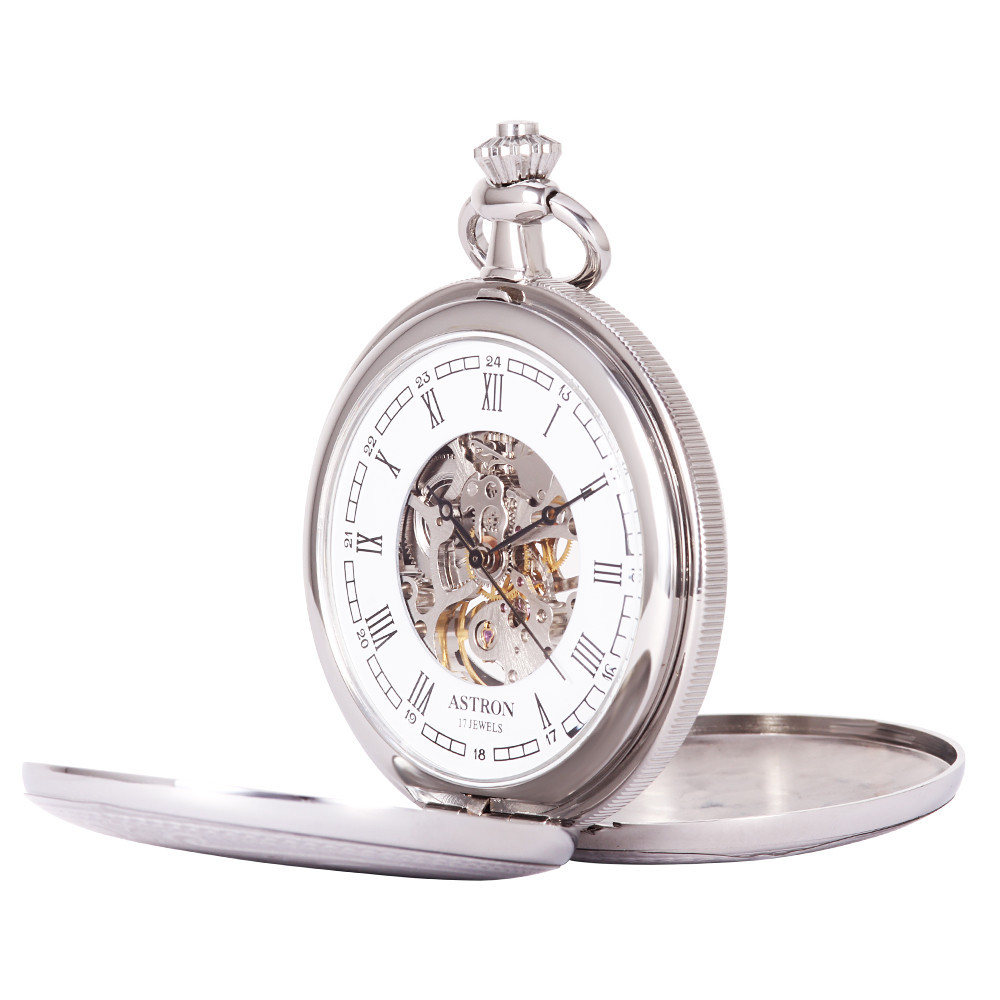 Astron férfi zsebóra, mechanikus, ezüst színű, római számos