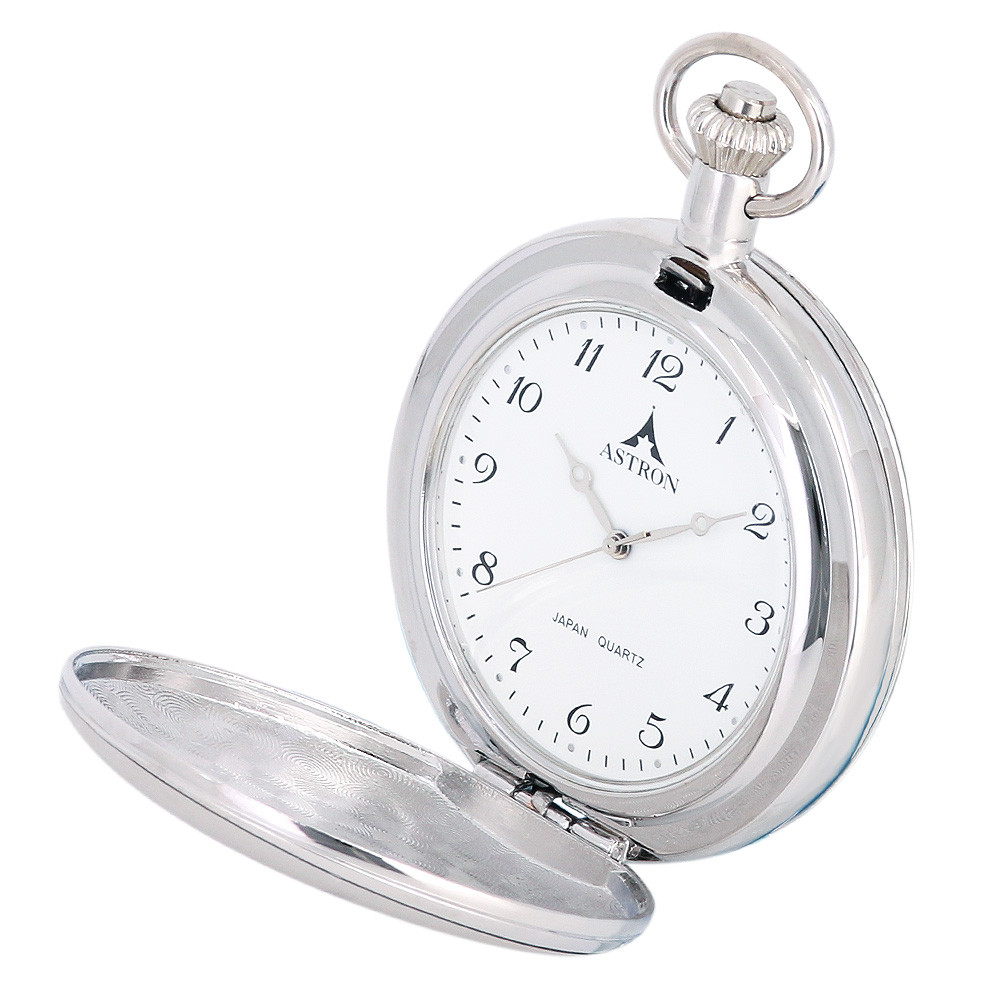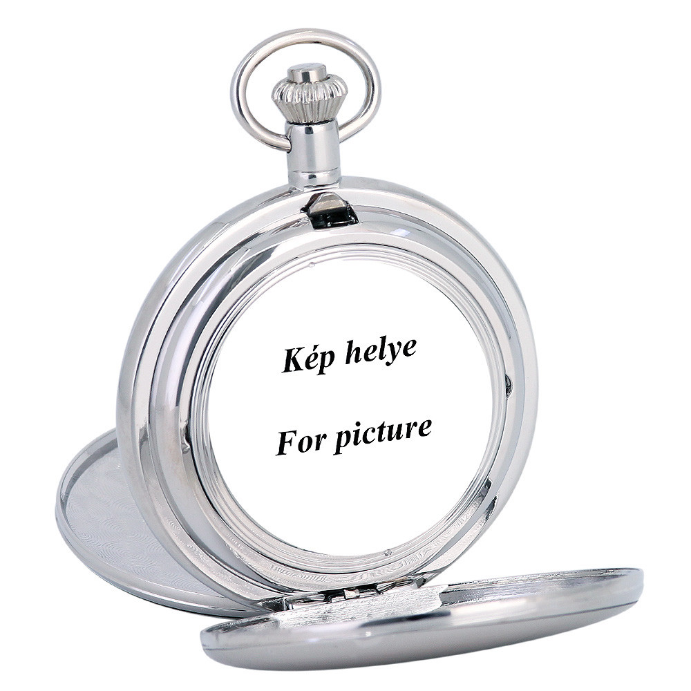 Astron férfi zsebóra, quartz, ezüst színű fémtok (fényes), duplafedeles, fényképtartóval, arab számos fehér számlap