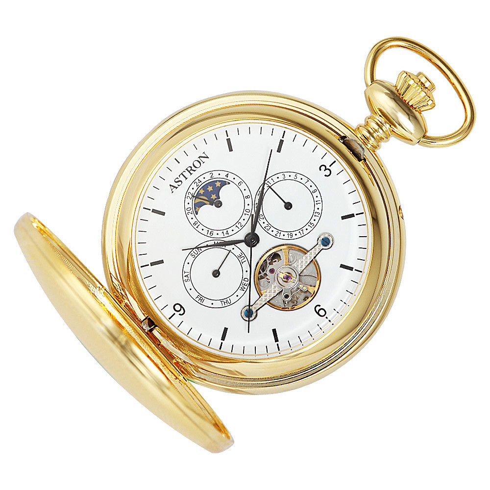Astron férfi zsebóra, mechanikus automata szerkezet, arany színű fémtok, fehér számlap