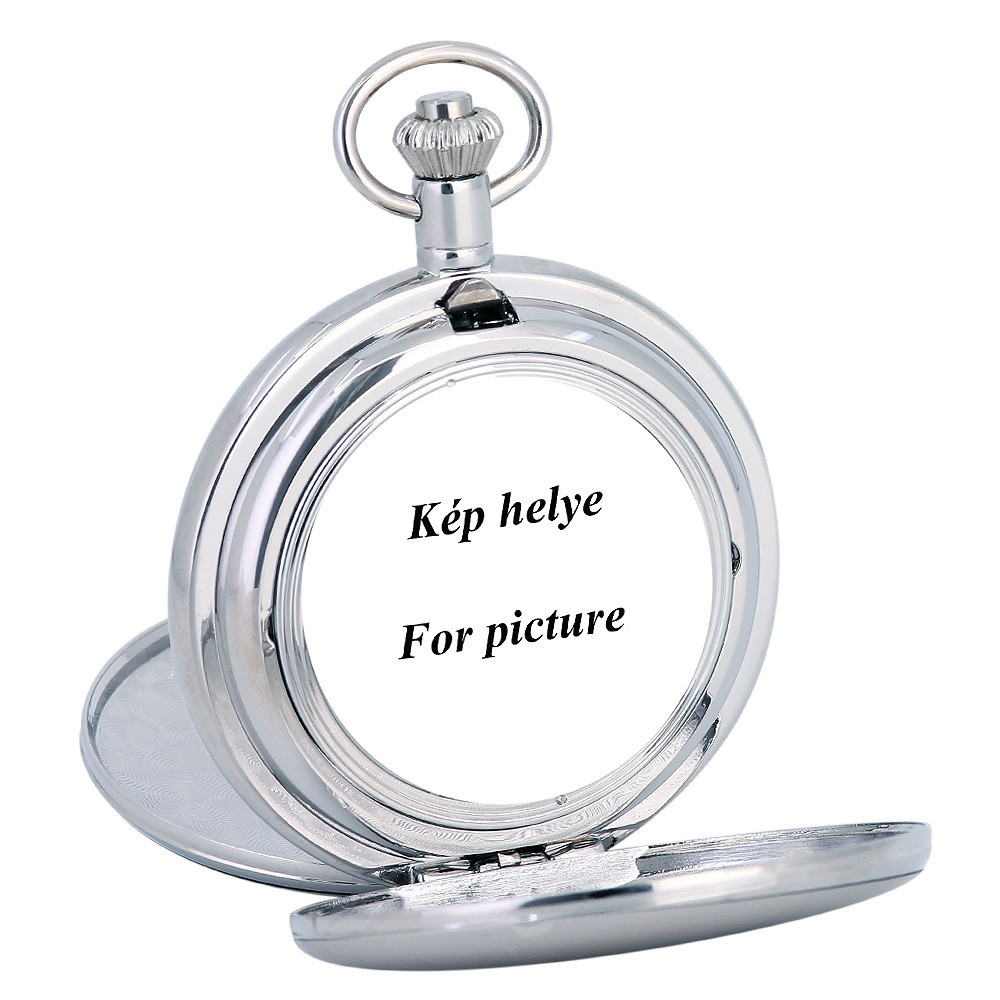 Astron férfi zsebóra fényképtartóval, quartz, ezüst színű fémtok (szálhúzott), duplafedeles, arab számos fehér számlap